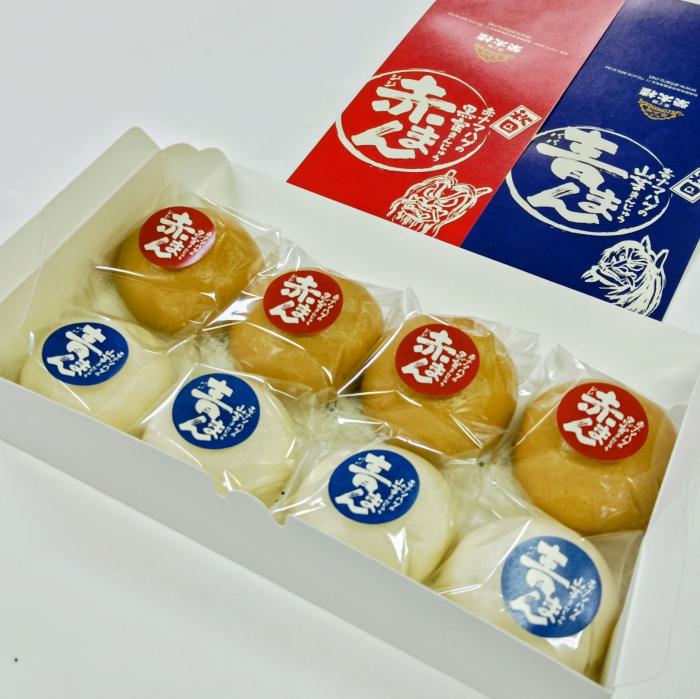 【赤まんじゅう】 小麦粉(国内製造)、小豆、グラニュー糖、黒砂糖、醤油、澱粉、寒天/増粘多糖類、乳化剤、膨張剤、(一部に小麦・大豆を含む)